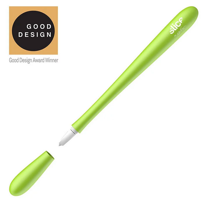 The Slice Precision Cutter features a high-tech Zirconium Oxide non-replaceable Slice micro-ceramic blade that lasts longer than steel and never rusts. A safer alternative to dangerous craft knives and blades. Design by Karim Rashid. Good Design Award Winner: Chicago Athenaeum Museum of Architecture & Design. Measures 155 L x 15mm diameter and weights 22gm (6” L x 0.6” diameter - 0.7 oz). SKU#00116.